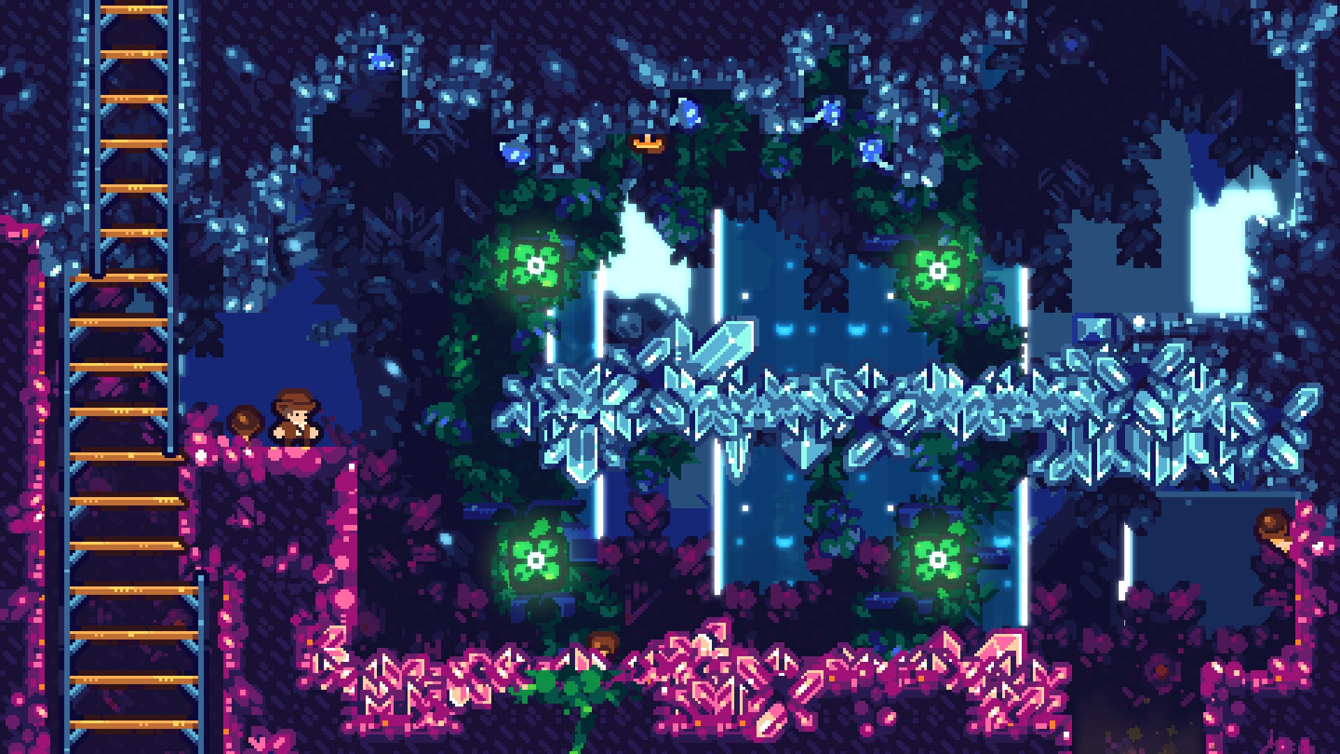 Archaeogem is a dynamic precision-platformer in which you, as a world-renowned archaeologist, must collect rare gems in the heart of mysterious biomes. Use your trusty whip to extract wild flowers' mystic powers, navigate ancient ruins, and overcome the many dangers of the wilderness. Become a legend - if you make it out alive! Your mission to expand human knowledge about these archaic and powerful artifacts will take you on a world-wide journey! From the depths of a rainforest, to the ancient ruins of a lost civilization, explore a diverse set of unique landscape, and the unique challenges that come with each of them. Though an interesting object of archaeological study, mystic flowers are your best resources when navigating the land! Whip at them to dash through the air, move platforms, and even swing at them. Jump, fling, swim and slide, and trace your own path through the untrodden woods!The coveted gems are hidden around the world, and it's up to your wits to get to them! These lost artifacts will take you on a wild adventure; retrieve them and expand your collection, and maybe even pick a few emeralds for yourself along the way!